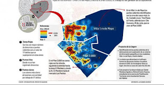 Se trabajó con estadísticas de 2015, cuando se anotaron 1.290 quejas formales en el Plan Tres Mil y 650 en la Villa Primero de Mayo. Introducidos los datos al sistema, se identificaron los puntos en la cartografía y así se logró ‘ecoreferenciar’ el delito, dando como resultado que en la Villa, los puntos calientes son: el casco viejo y las avenidas Cumabi y Tres Pasos al Frente, además de las av. Che Guevara y 16 Julio que unen este distrito con el Plan Tres Mil. En el Plan Tres Mil son: la rotonda, la avenida que se conecta con el plaza de El Mechero, y la av. El Mechero hasta el mercado Los Pocitos.